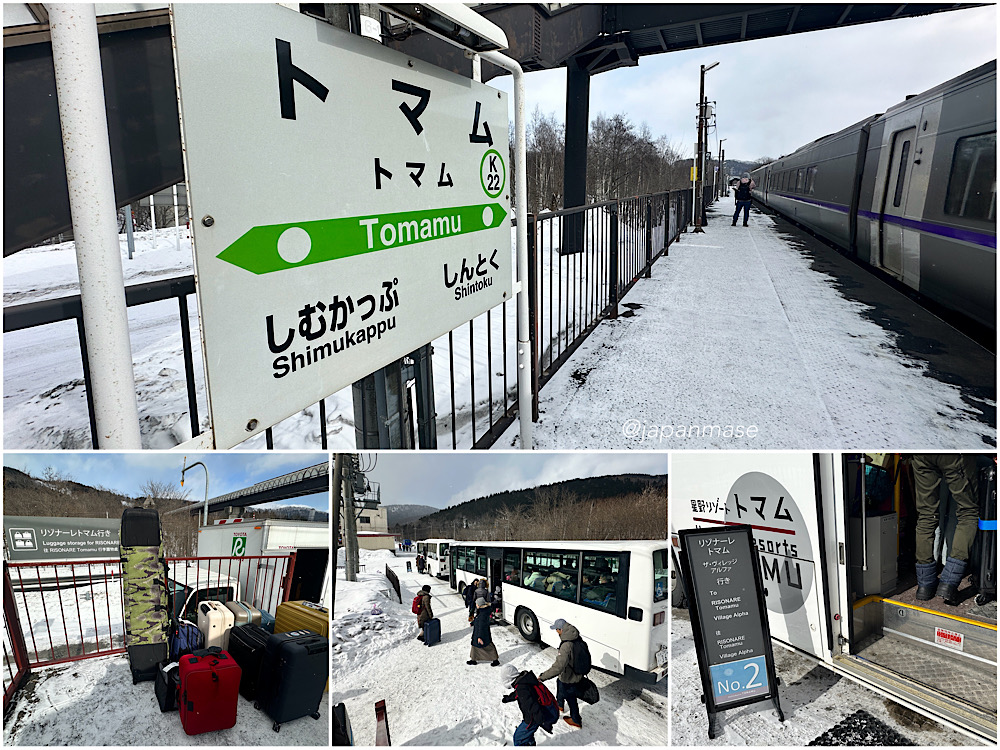 หากเดินทางมาด้วยรถไฟลงสถานีโทมามุ จะมีรถบัสรอรับแขกโรงแรม และมีรถบริการมารับกระเป๋าไปที่โรงแรม เราเดินขึ้นรถบัสไปตัวเบาๆตรงไปเชคอินที่โรงแรมได้เลย