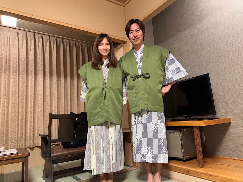 และมีชุดชากาแฟ ชุดยูกาตะให้ใส่ไปออนเซ็น และแน่นอนพวกเราผู้หลงใหลการแช่ออนเซ็น รีบเปลี่ยนชุดไปออนเซ็นทันที😉